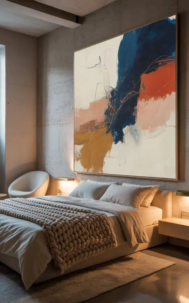 Whether it’s abstract, vintage, or something personal, oversized art draws the eye up and sets the tone.