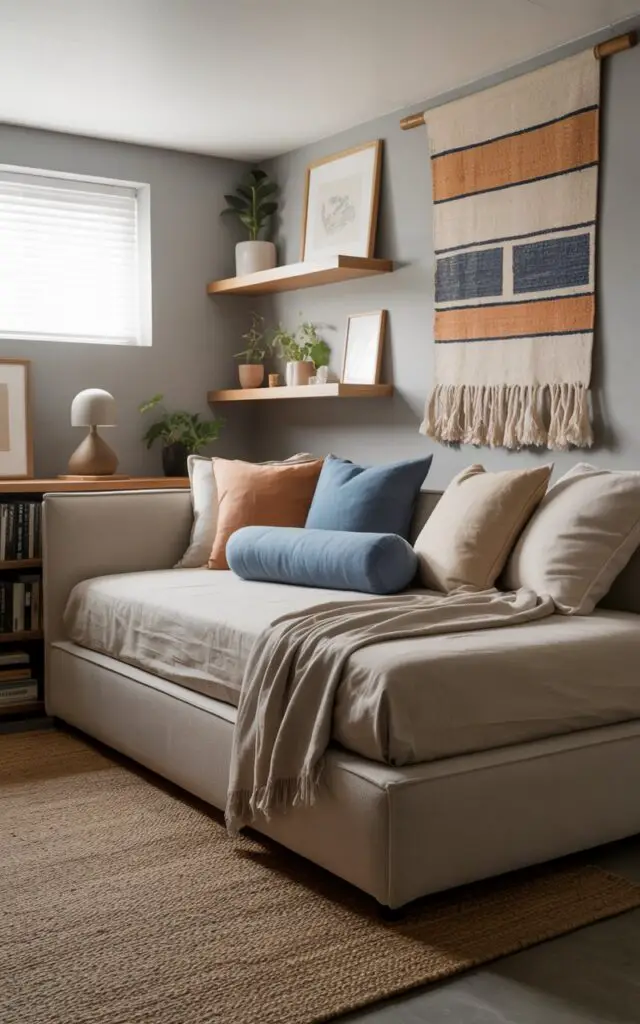 A daybed or sleeper sofa turns your basement bedroom into a flex space.