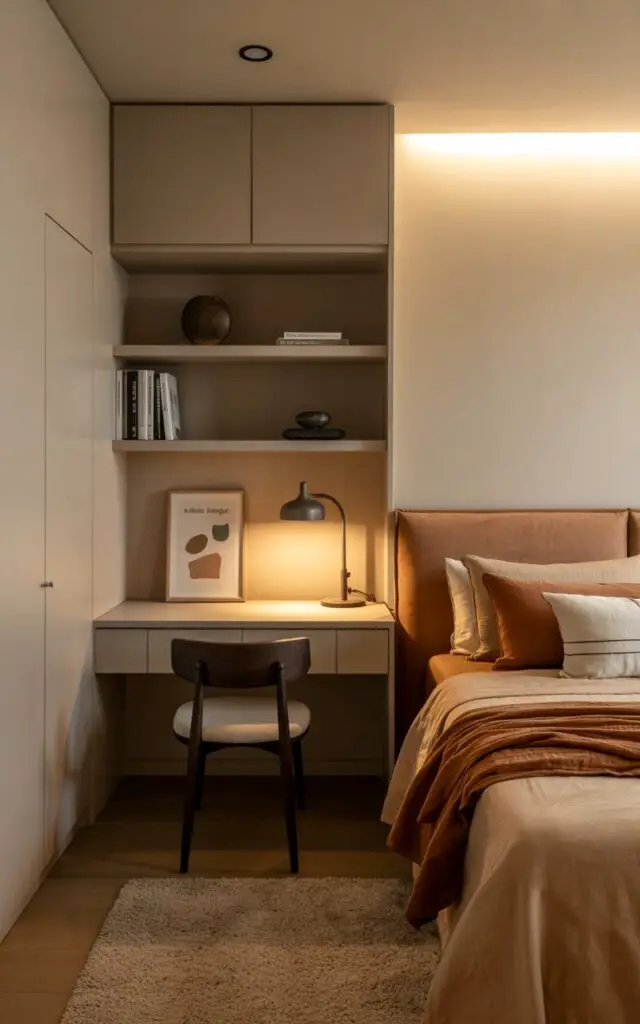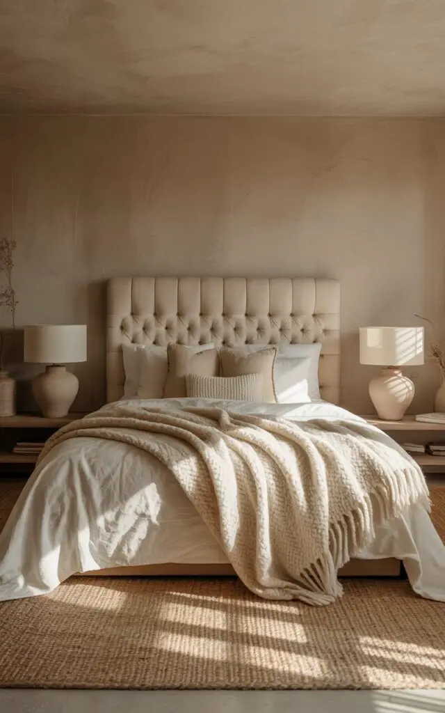 These tones make the space feel intentional and wrapped in warmth. Add soft lighting, and you’ll never want to leave your cozy cocoon.