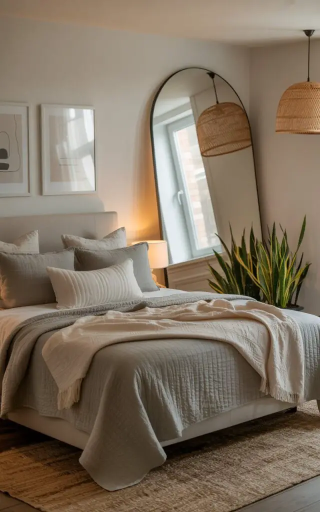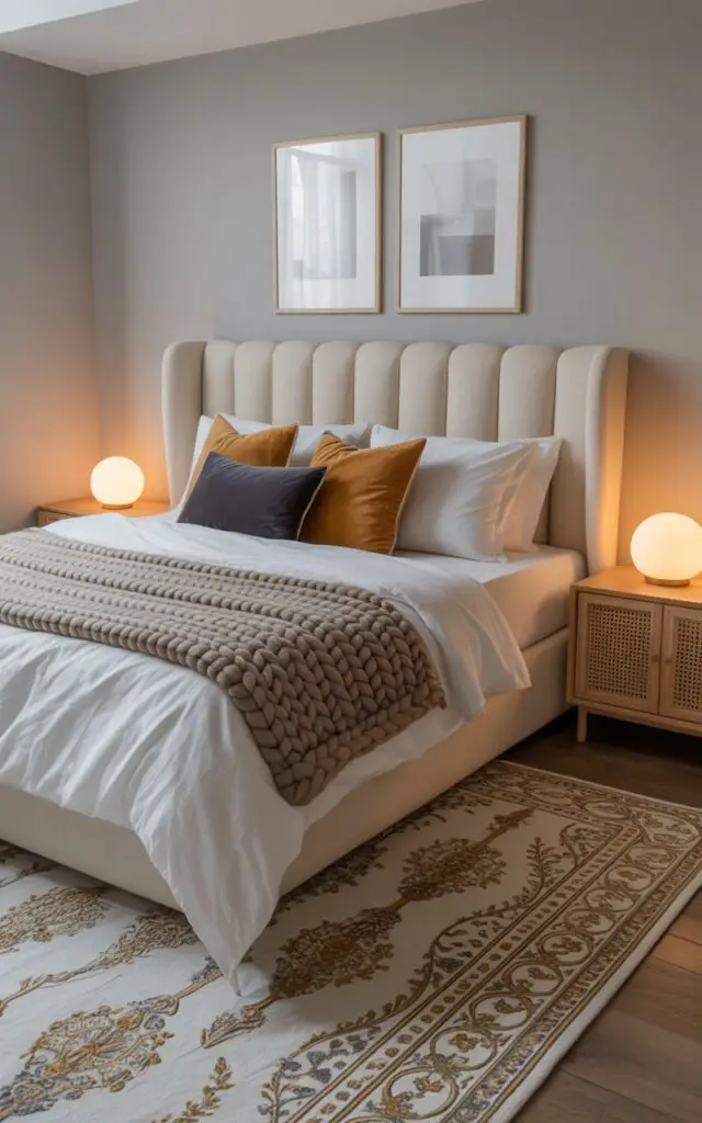 It draws attention upward—a smart trick when you’re working with a lower ceiling. Think of it as jewelry for your bedroom wall.