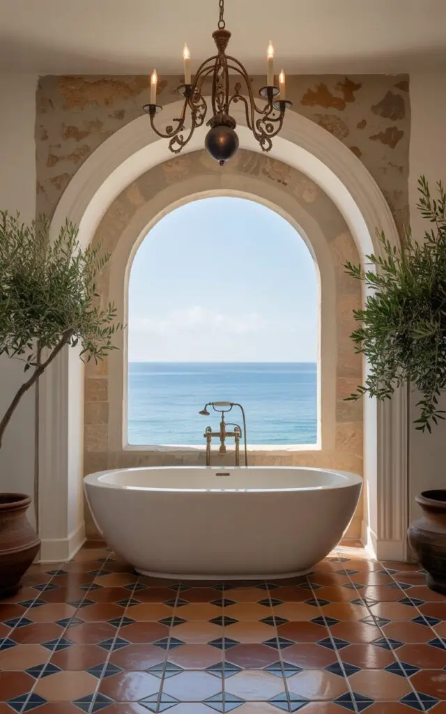 Arched windows soften your bathroom’s edges with graceful curves and a hint of old-world romance.