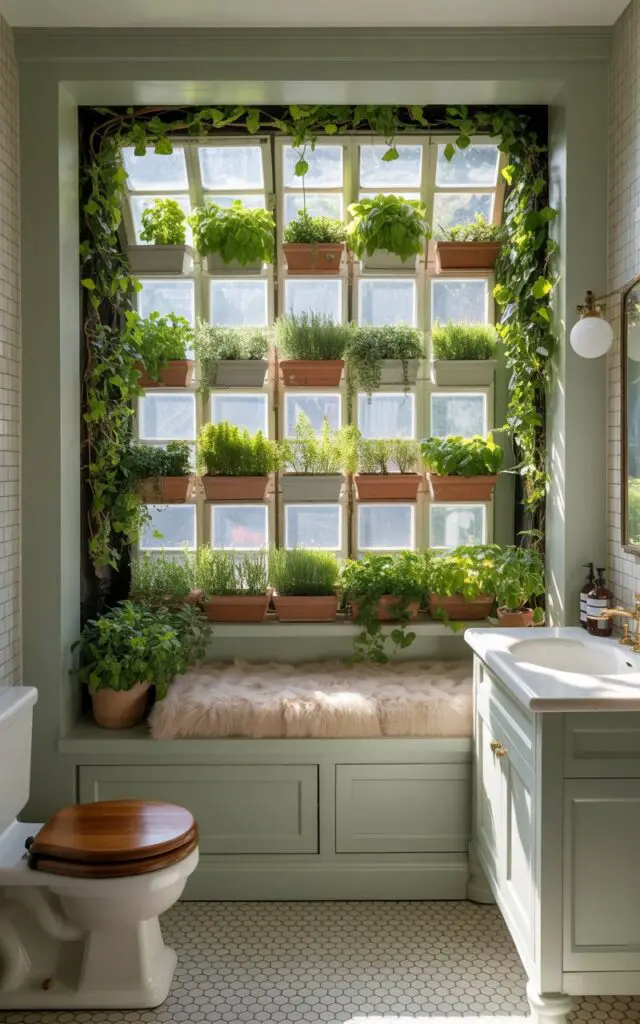 A garden window juts out like a tiny sunroom for your plants—and yes, it’s totally bathroom-appropriate.