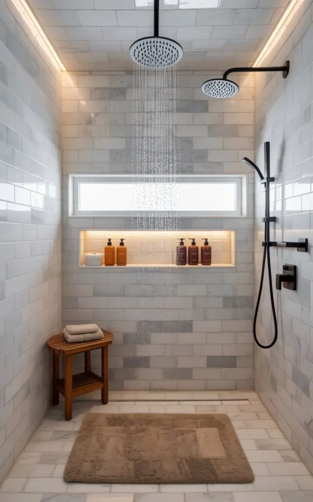Use frosted, ribbed, or textured glass for privacy. It makes your shower feel twice as big and twice as luxurious.