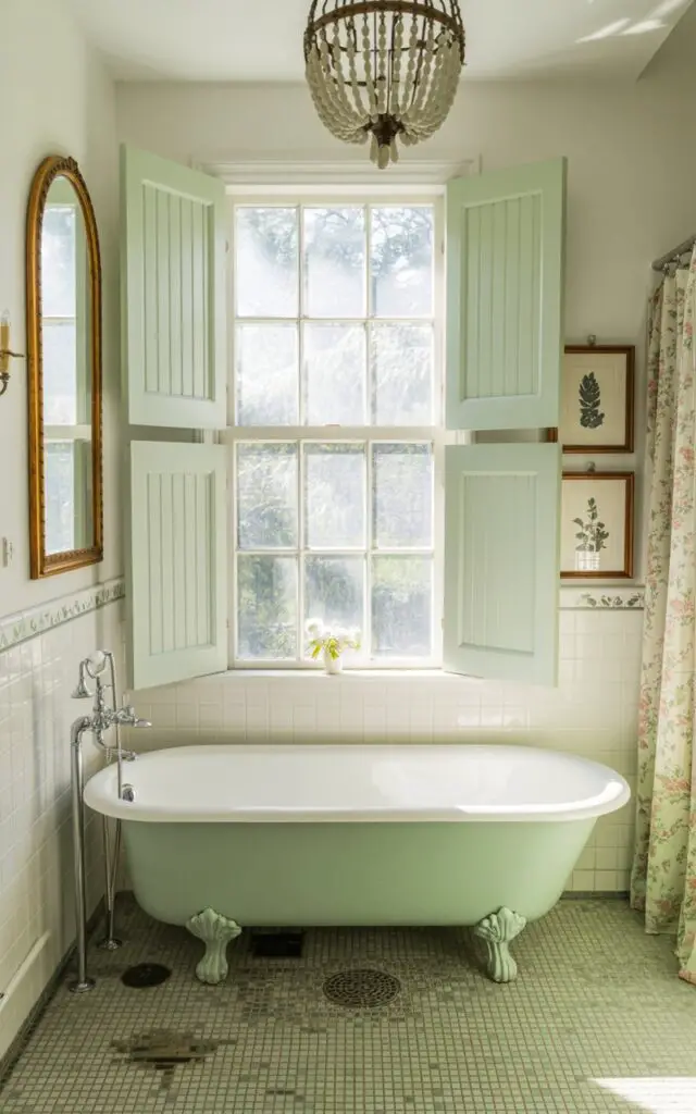 Shutters aren’t just for the South—they’re timeless and totally bathroom-approved.