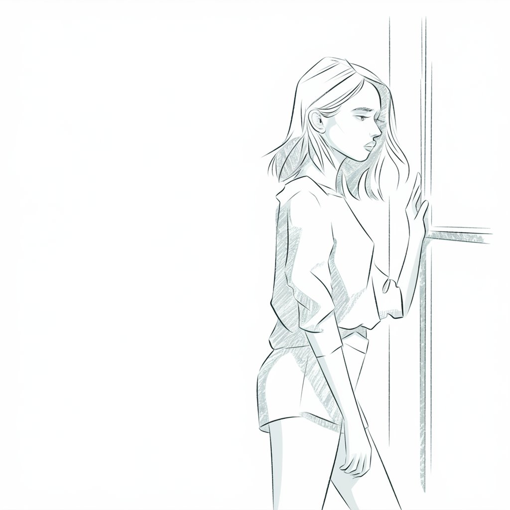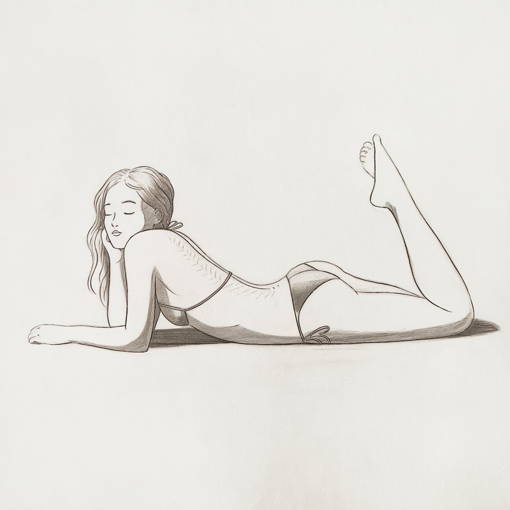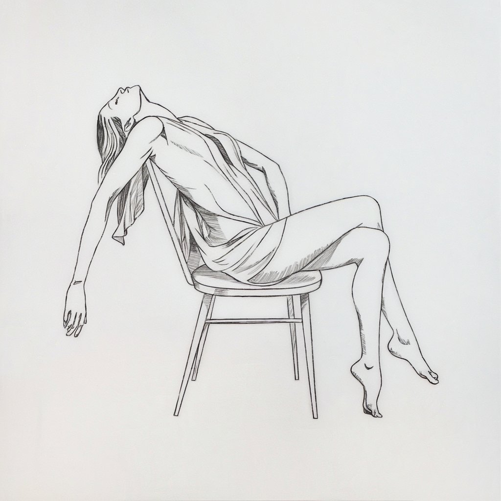 The pose is subtle, often from the side or back, with soft posture and relaxed limbs. It’s all about emotion in stillness.