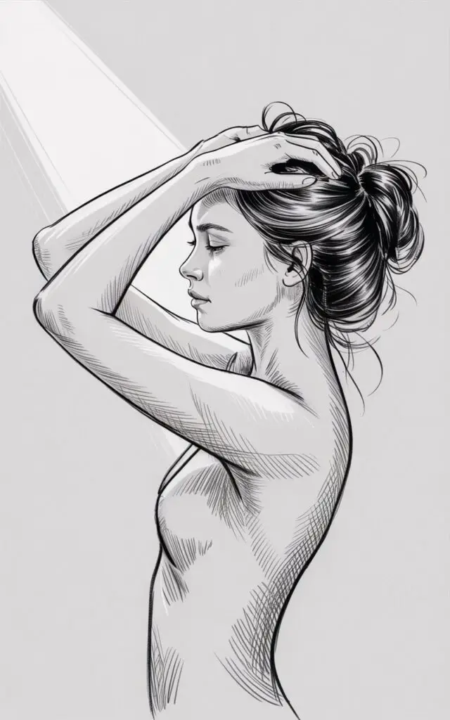 Drawing a woman with her hands in her hair creates gorgeous arm lines and an expressive gesture.