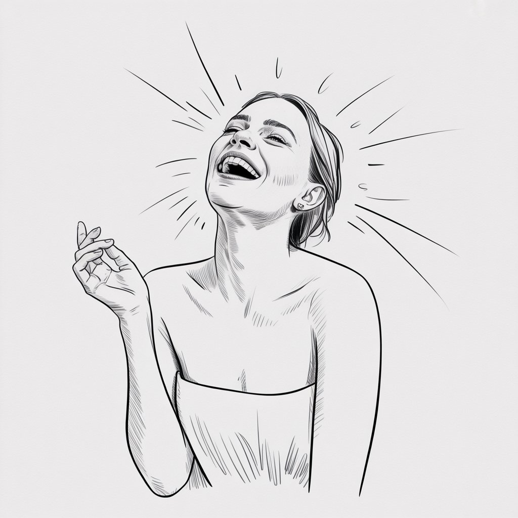 Draw a woman mid-laugh, eyes squinted, hands maybe flung out. Head tilted back, mouth open.