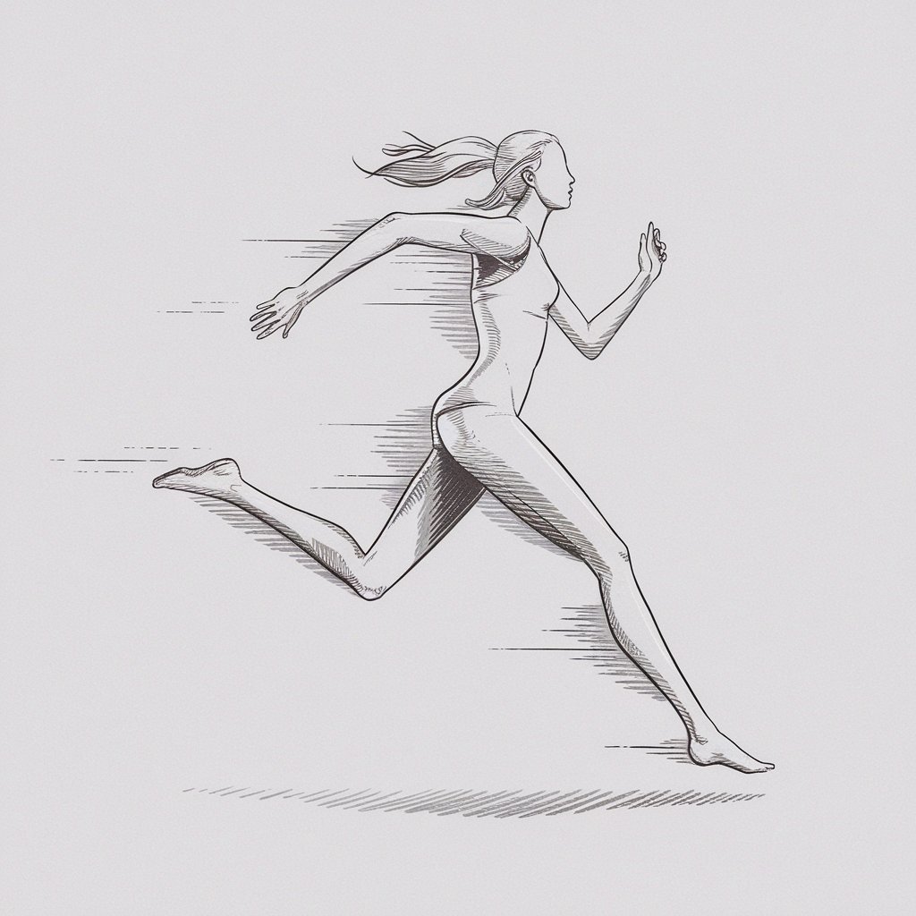 Drawing a woman mid-run gives your sketchbook energy.