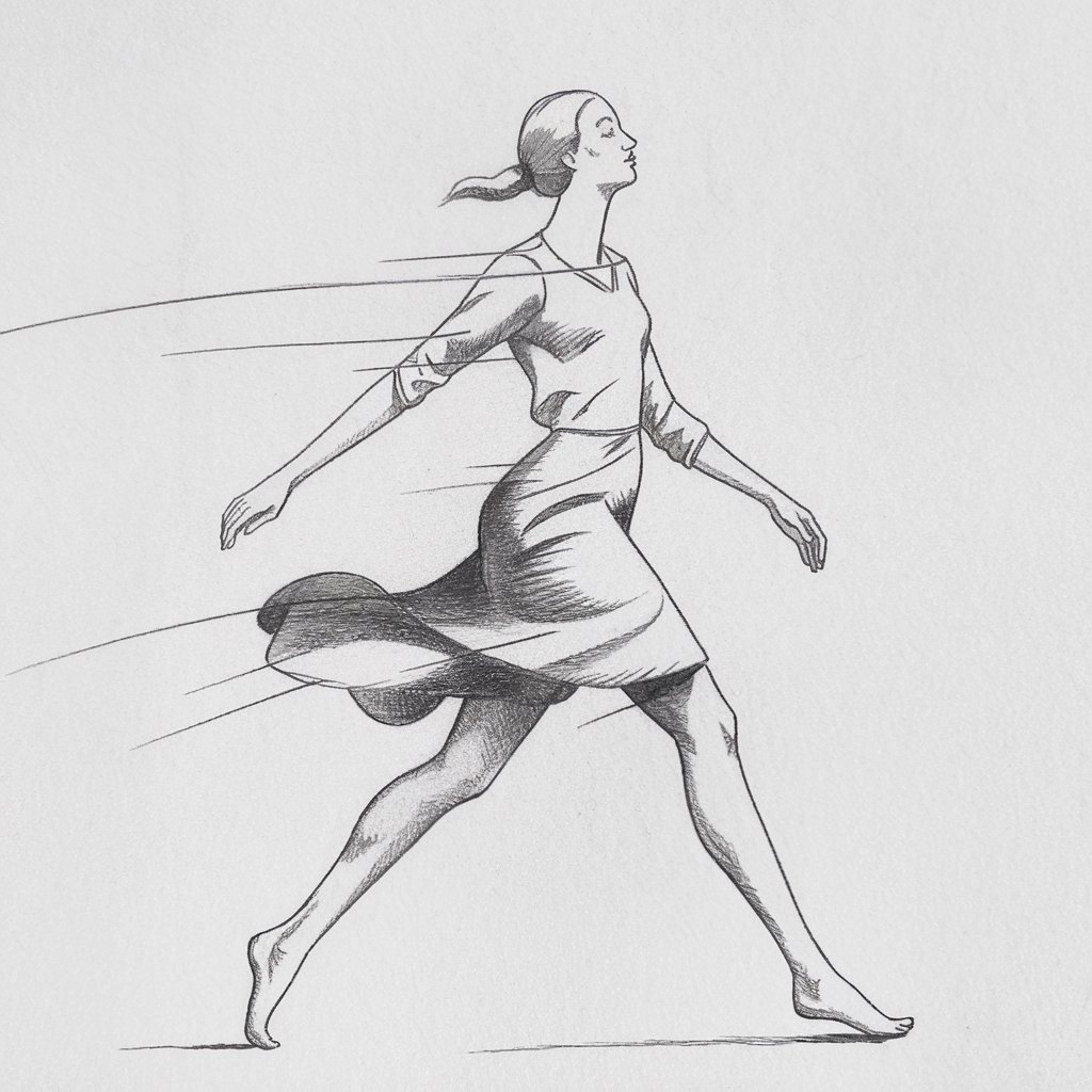 Flowing clothes or swinging arms add charm. This pose is sleek, timeless, and quietly expressive.