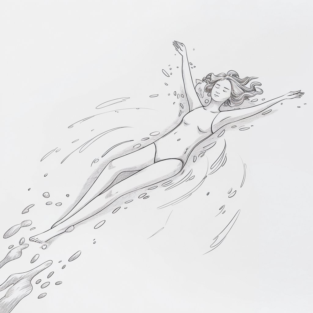 Water changes how the body behaves—softer curves, lighter lines.