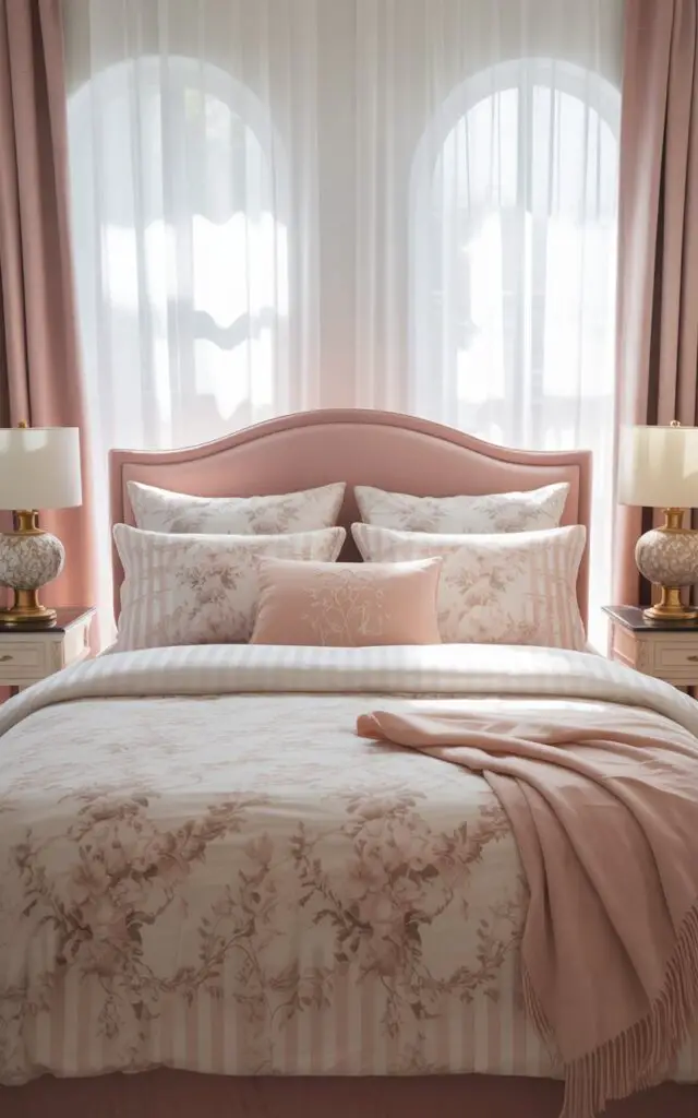 Cap it all off with bedding that ties your theme together—think florals, stripes, or subtle prints in pink and white.