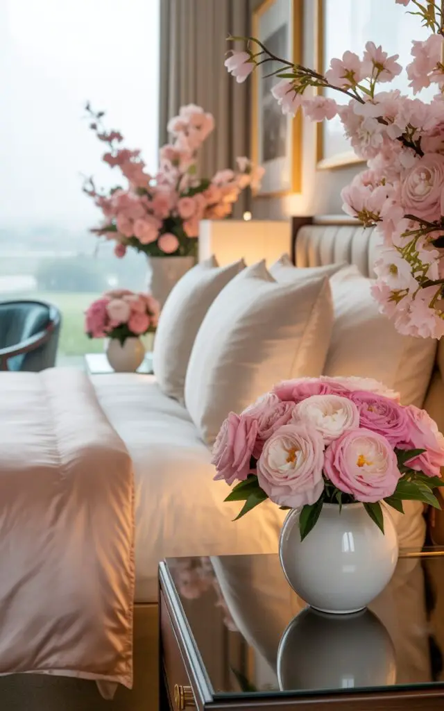 Pop some blush peonies or soft roses into a crisp white vase, and boom—your room feels alive.