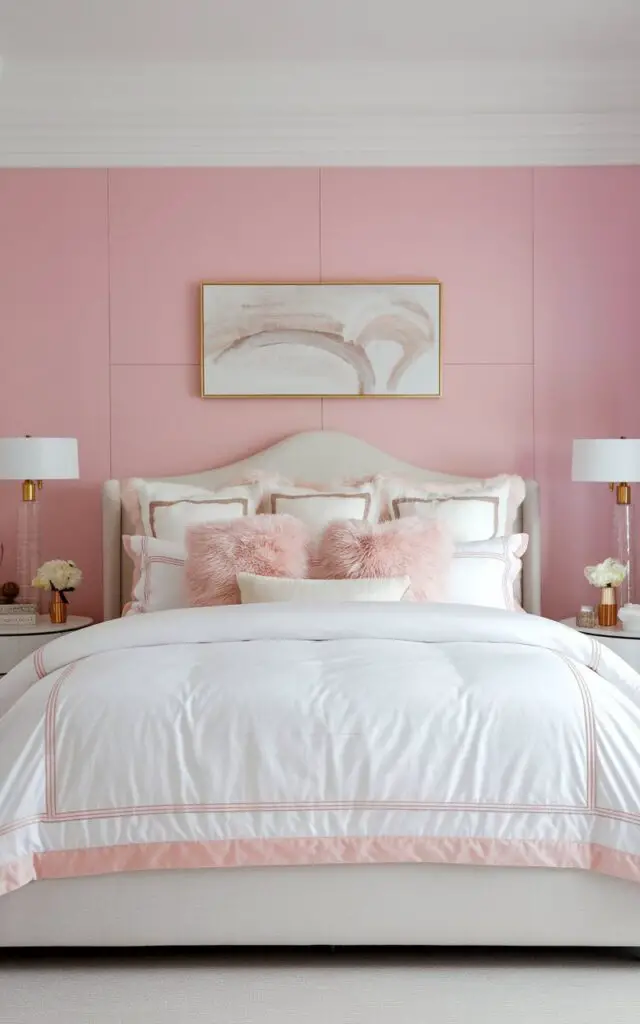 A soft pink accent wall behind your bed adds just the right dose of color.