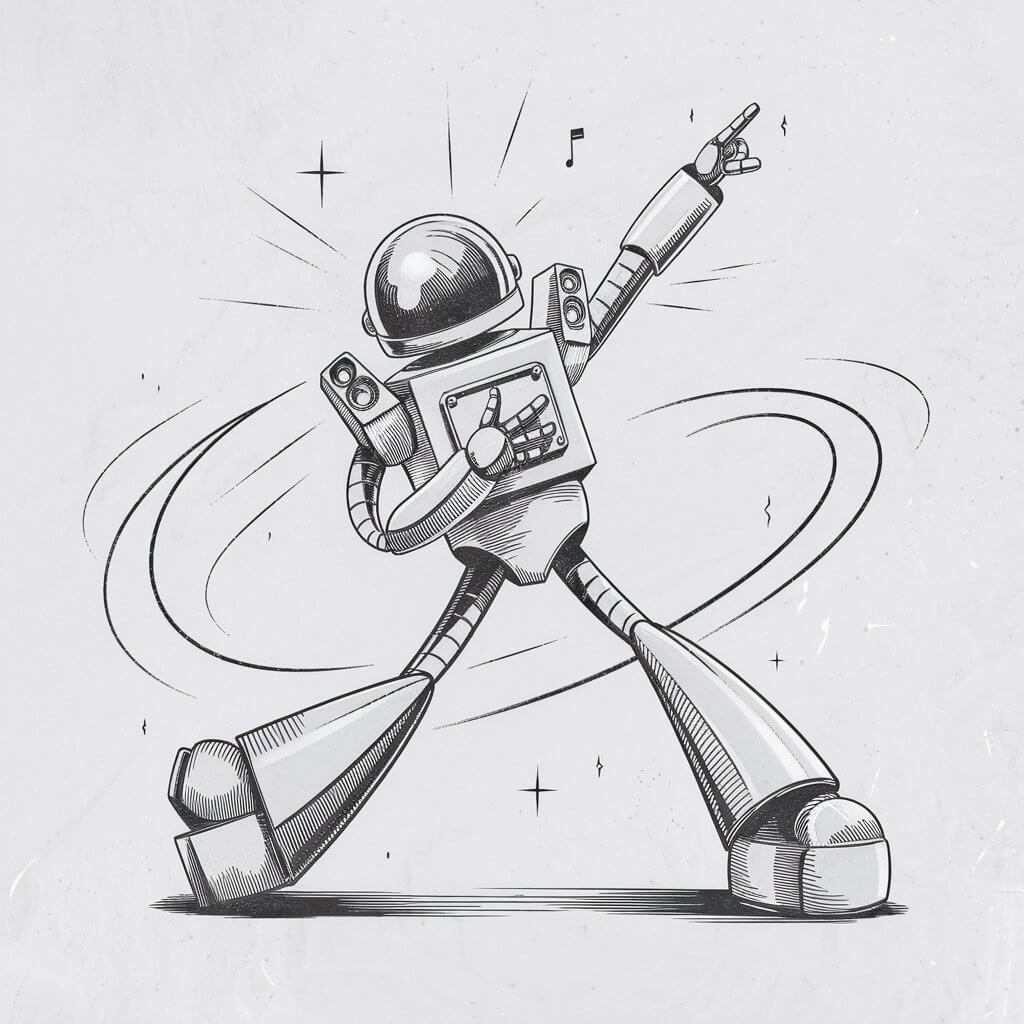 This robot’s built for beats. Surround it with floating musical notes or dancing birds.