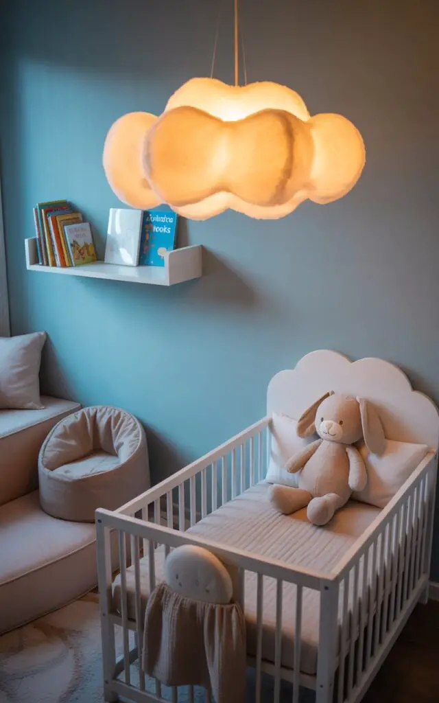 Use playful lighting, like a cloud-shaped lamp, to create a dreamy space your toddler will love to visit.
