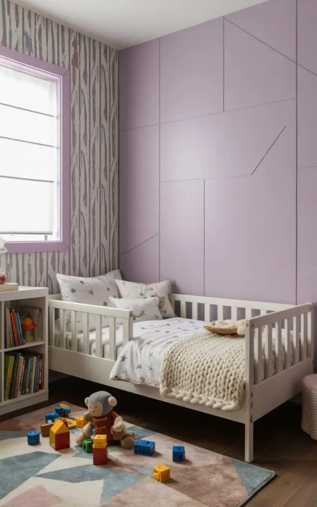 You can visually separate areas of your toddler’s room by using different colors or wallpapers for distinct zones.