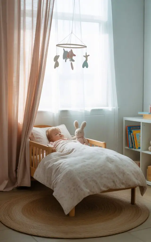 To ensure a good night’s sleep for your toddler, incorporate blackout curtains.