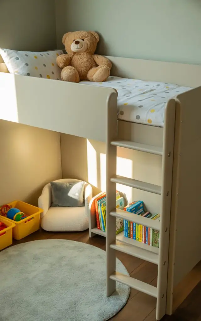 You can incorporate built-in cubbies, toy boxes, or under-bed storage for a clean, clutter-free space.