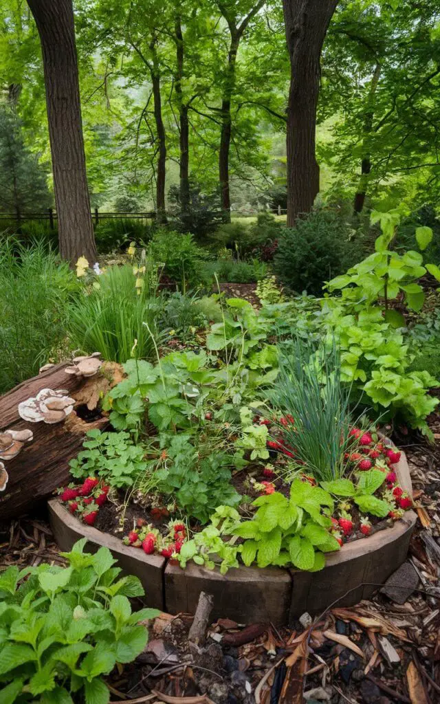 Add woodland edibles like wild strawberries, ramps, or mushrooms.