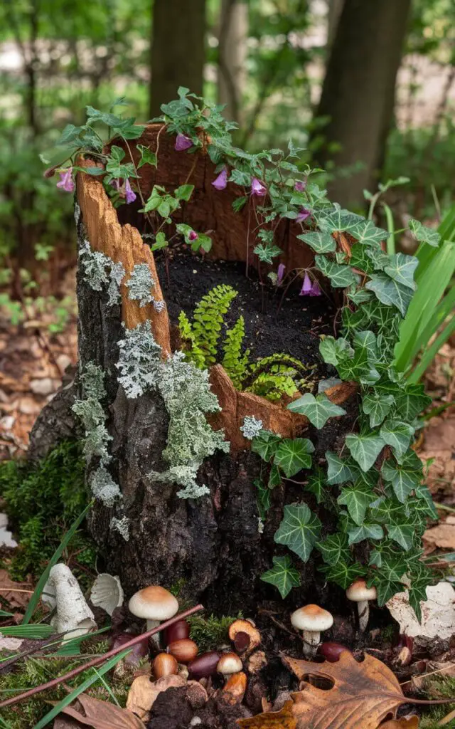 4. Incorporate a Hollowed Log Planter